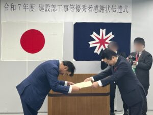令和7年度 建設部工事等優秀者表彰における感謝状拝受について